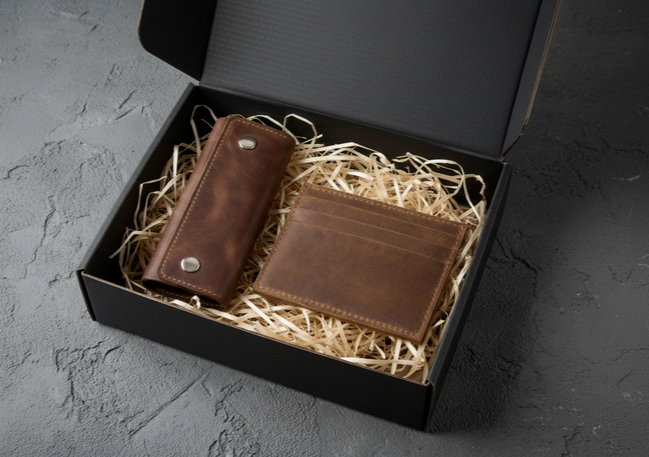 Для ключевых клиентов, партнёров, дилеров и VIP‑гостей. Наборы из натуральной кожи с вашим логотипом в премиум упаковке. На закрытие сделки, праздник, годовщину сотрудничества, в конце года.